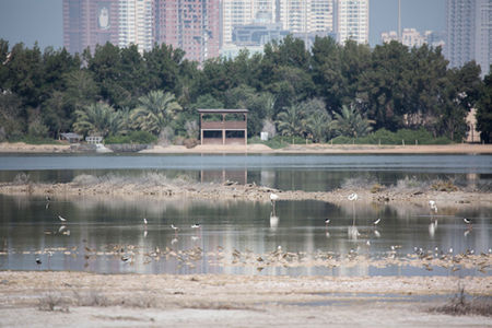 The WASIT WETLAND CENTRE is a natural reserve in Sharjah (United Arab Emirates). It has a very diverse ecosystem, which comprises coastal sand dunes and salt flats, linking ponds and a large, open lake. The reserve also contains many lagoons. This gives a home to many bird species. Including numerous migrating and rare birds. The centre aims to educate people on this diversity and it offers its facilities to the public and researchers. It contains eight bird hides, each providing detailed information and sign-boards about the birds that frequent the area, while binoculars and golf carts are available to take visitors through the wetlands and to the bird hides.